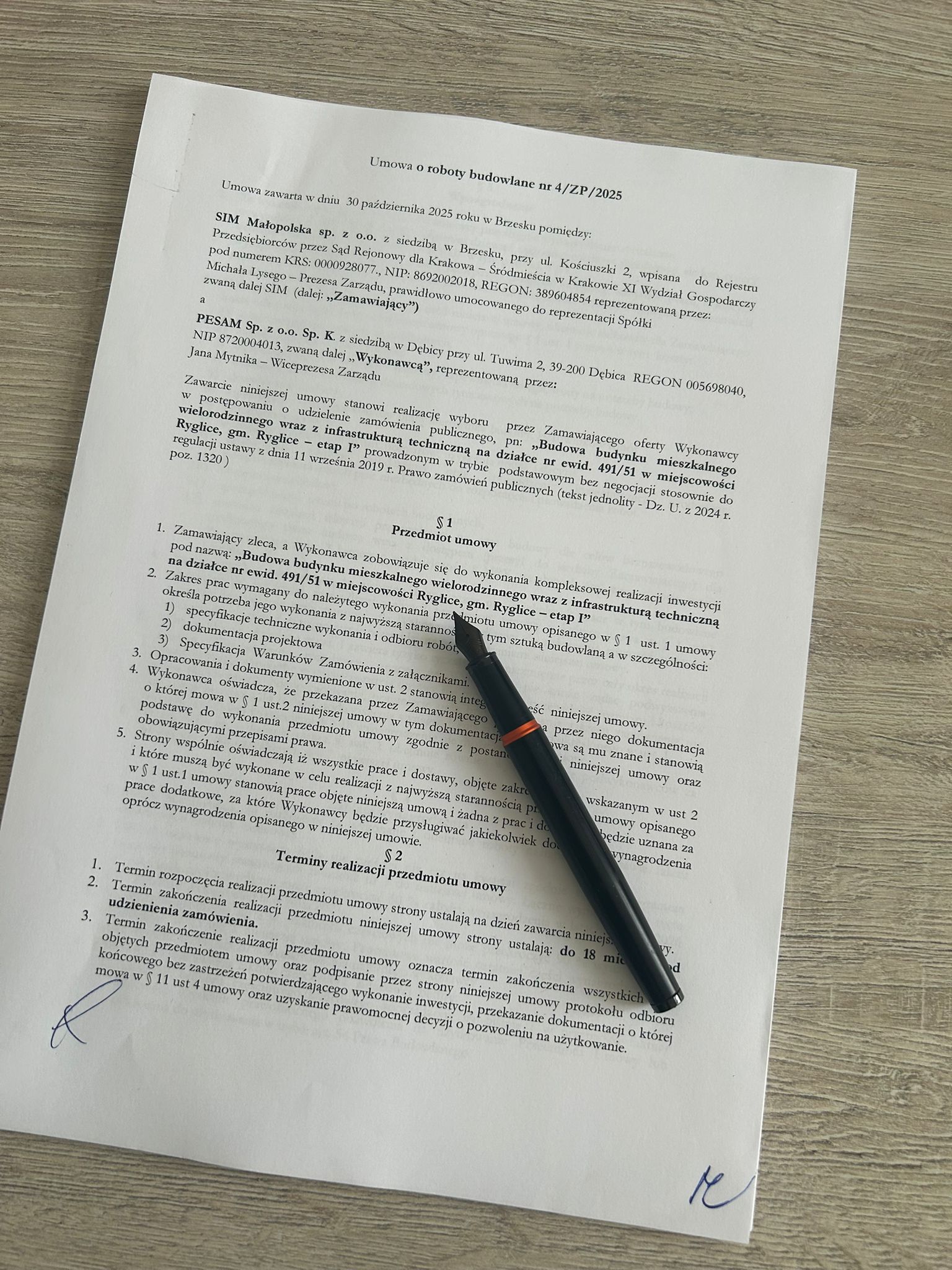 30 października 2025 r. podpisano umowę na realizację inwestycji mieszkaniowej SIM Małopolska w Ryglicach.